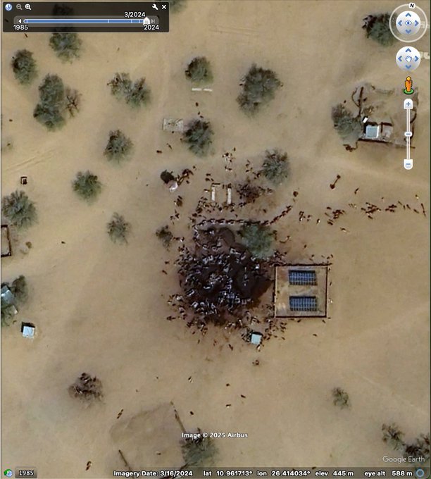وتم تأكيد هذه القراءة لمشاهد مماثلة لبقع سوداء تجمعت حولها قطعان ماشية على الصورة الموجودة أسفله على بعد نحو عشرة كلم من مكان التقاط الصورة الأولى في سنة 2022.