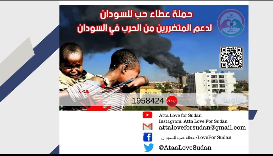 كتب سليمان سري دشنت مبادرة “عطاء حب للسودان” نشاطها الإنساني في السابع عشر من مايو، بتوفير دعم مقدر كاستجابة عاجلة للمتضررين من الحرب في الخرطوم وعدد من الولايات، بإطلاق صفحتها عبر الفيس البوك ومواقع التواصل الاجتماعي الاخرى، بينما أعلن الفنان عاطف أنيس عن استضافته للمبادرة اليوم الخميس عبر صفحته الرسمية على فيس بوك، في تمام الساعة السابعة والنصف مساءً بتوقيت …