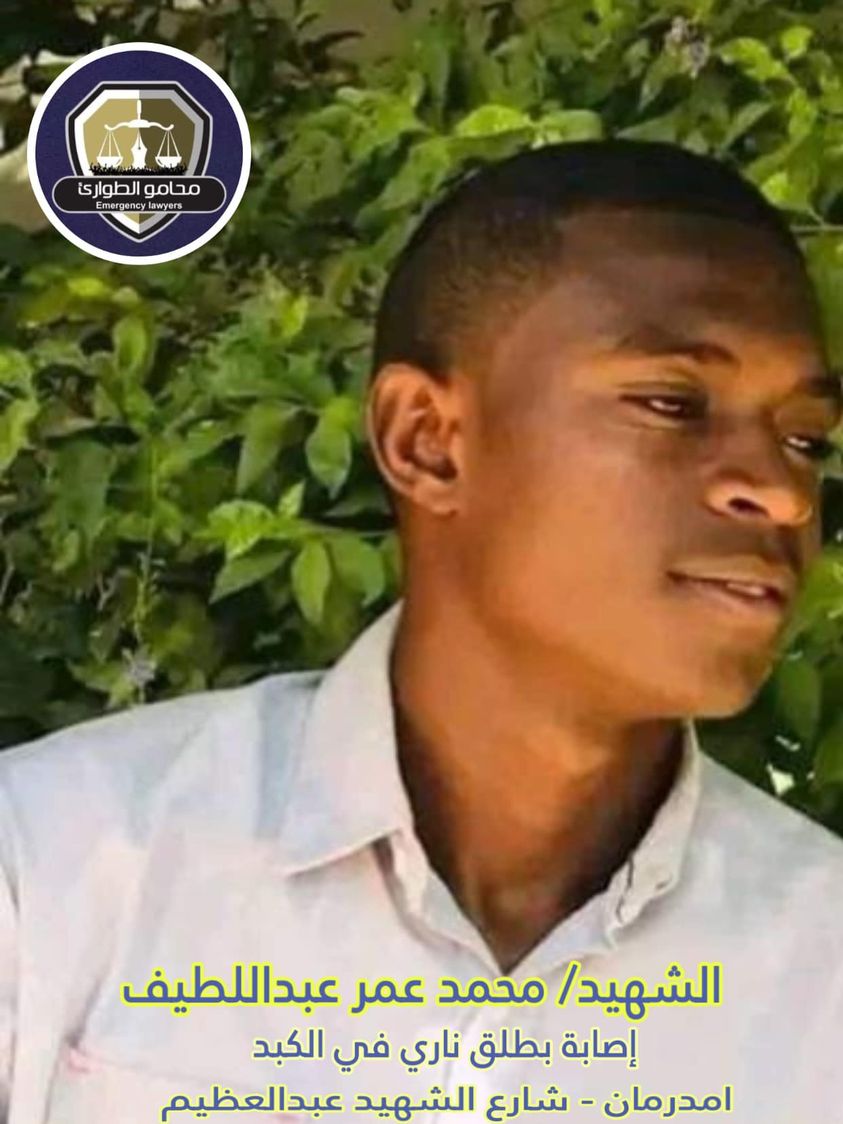 صعدت روح الشهيد محمد عمر عبداللطيف بمستشفى وعد متأثرا بطلق ناري في مواكب امدرمان اليوم بشارع الشهيد عبد العظيم ، الرصاصة اصابة كبد الشهيد مباشرة ، سيتم نقل الجثمان الى مشرحة امدرمان ، ندعو جميع الثوار ولجان المقاومة الحضور الى المشرحة و المشاركة في تشييع الشهيد لمقابر حمد النيل . إنا لله وانا إليه راجعون 24/نوفمبر #اعلام محامو الطوارئ …