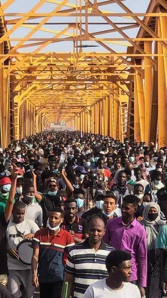 فإذا سألت عن الحال عزيزي القارئ؟ فإن الحال معلّق على جسور الخرطوم، تعلوها الهتافات والأمنيات بوطن حدادي مدادي .. وطن ﻋﺎﺗﻲ .. ﻭﻃﻦ ﺧﻴﺮ .. ﺩﻳﻤﻘﺮﺍﻃﻲ .. ﻭﻃﻦ ﻣﺎﻟﻚ ﺯﻣﺎﻡ ﺃﻣﺮﻭ .. ﻭﻣﺘﻮﻫﺞ ﻟﻬﺐ ﺟﻤﺮﻭ .. ﻭﻃﻦ ﻏﺎﻟﻲ .. ﻧﺠﻮﻣﻮ ﺗﻼﻟﻲ ﻓﻲ ﺍﻟﻌﺎﻟﻲ. تجري أسفلها ما غاب واضمحل من آمال في التغير المدني المنشود على حناجر وأقلام الشباب الوهاج. التغيير …